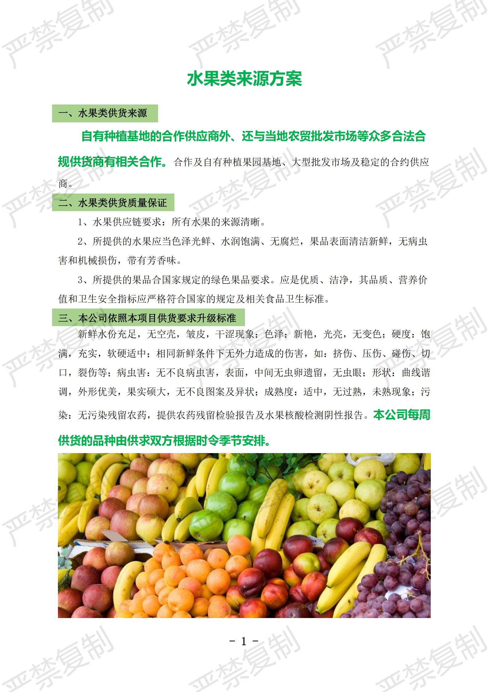 水果类供货来源;水果类供货质量保证;依照本项目供货要求升级标准;《水果验收质量保证》