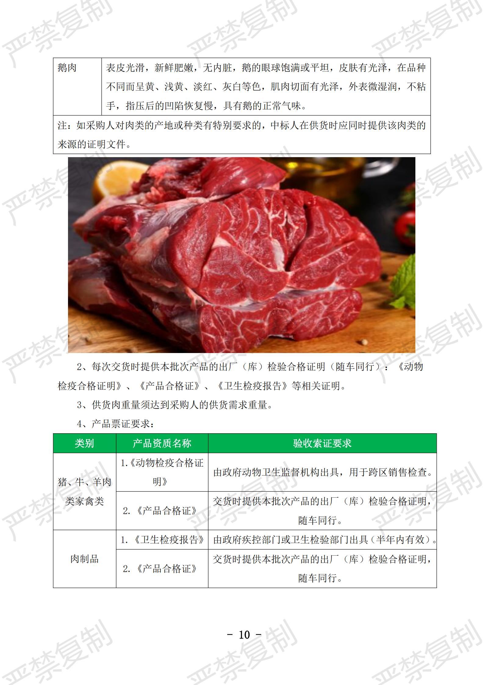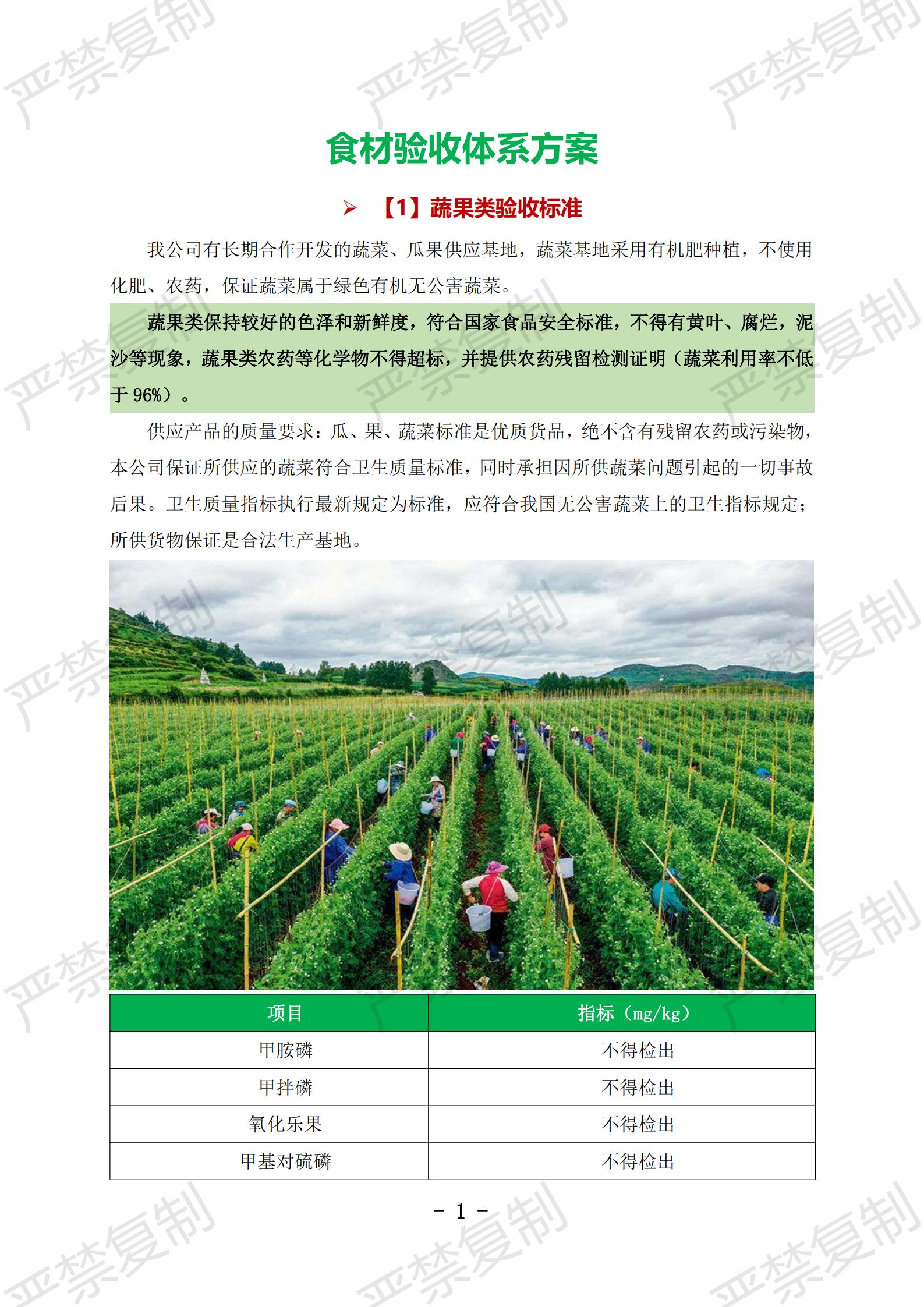 蔬果类验收标准;水果类验收标准;冷冻类验收标准;水产类验收标准;鲜肉类验收标准;蛋类验收标准;豆制品验收标准;粮油类验收标准;调料类验收标准;干货类验收标准