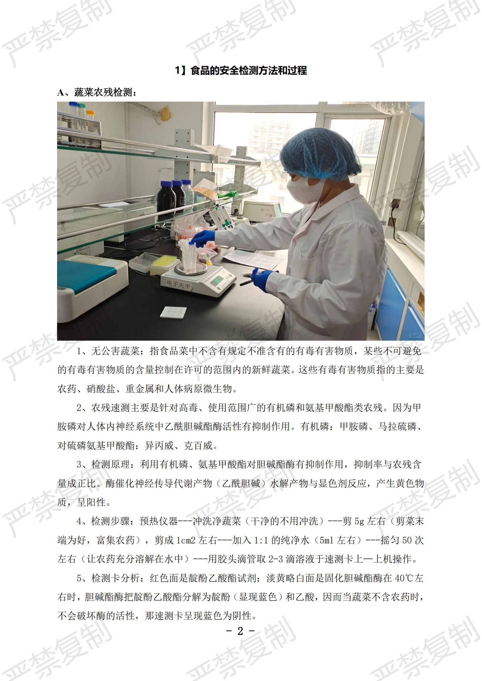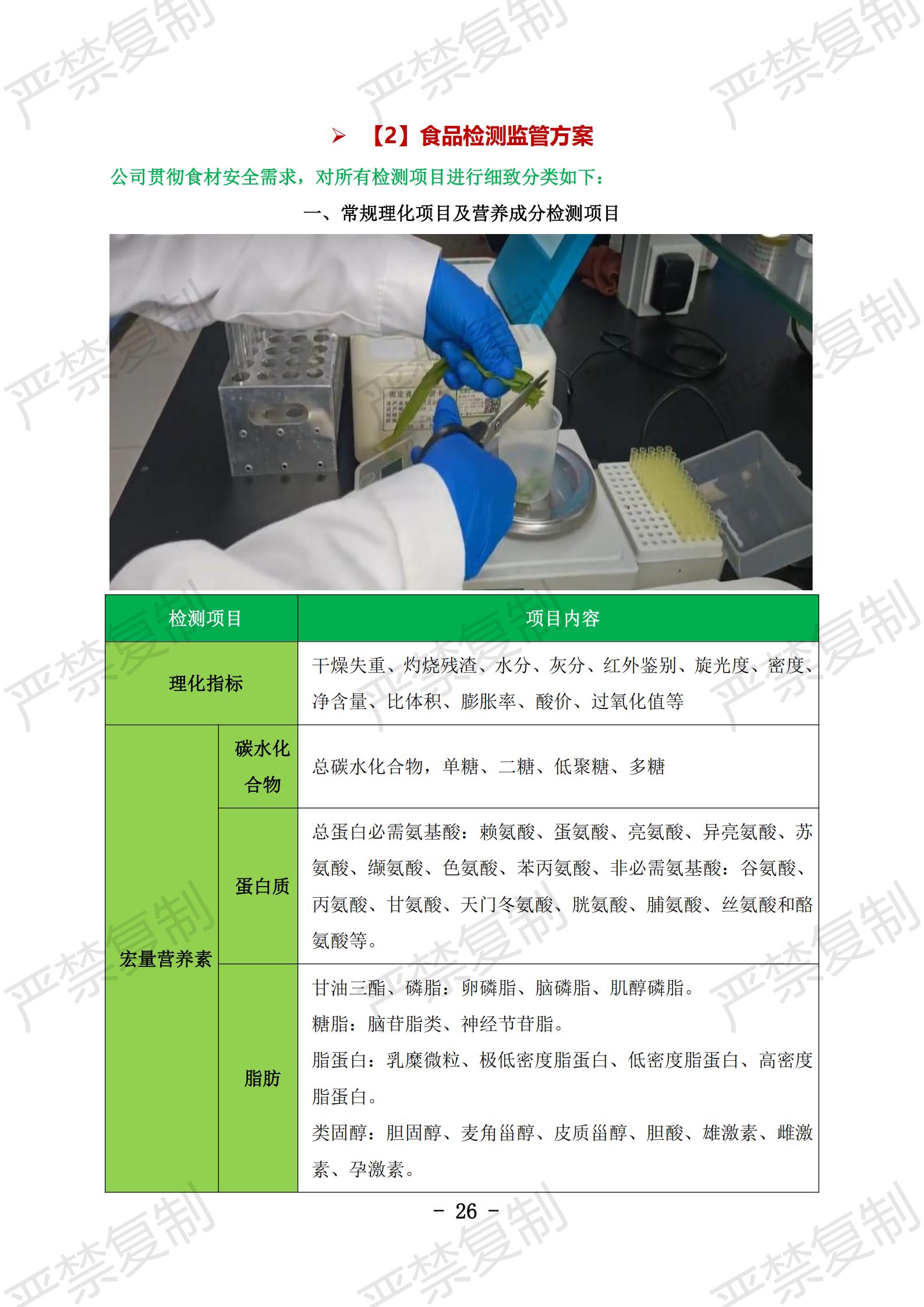 【1】食材安全检测流程:1、入库检测,2、出库检测,3、三级检测流程监控;【2】食品检测监管方案